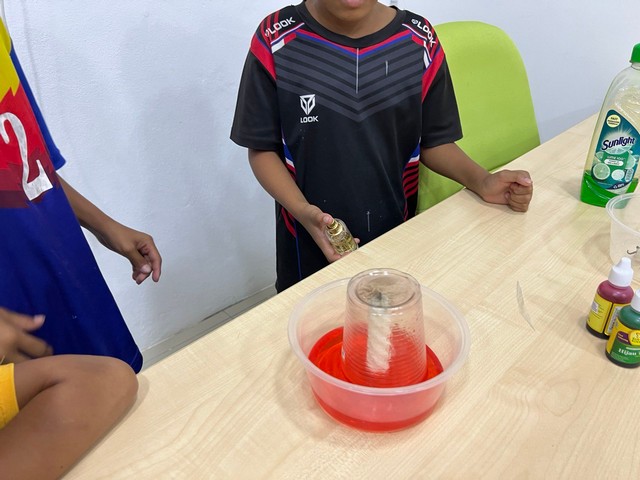 Antara pengisian kelas tersebut adalah aktiviti STEM membuat magic candle. Bahan-bahan yang diperlukan adalah air, pewarna makanan, cawan, lilin, bekas dan minyak wangi. Mula-mula bekas diisi dengan air yang telah diletakkan pewarna makanan. Lilin diletakkan ditengah-tengah bekas tersebut dan apabila cawan yang telah disembur minyak wangi menutupi lilin tersebut, air dihisap dengan cepat.