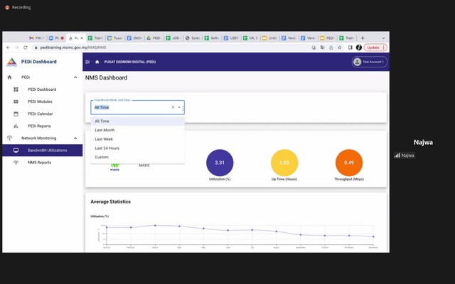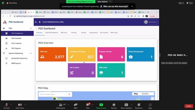 21 Julai 2023 | Aktiviti TerkiniPada 20 Julai 2023, Jumaat, Penolong Pengurus Pusat Ekonomi Digital (PEDi) Rantau Panjang telah menyertai Online Training on PEDi System (Phase 1) yang dianjurkan oleh pihak MCMC. Latihan secara atas talian tersebut telah dijalankan menggunakan platform Zoom Meeting yang bermula daripada jam 9:30 pagi sehingga jam 12:30 tengahari dan telah dihadiri oleh semua staf PEDi daripada zon Sarawak.