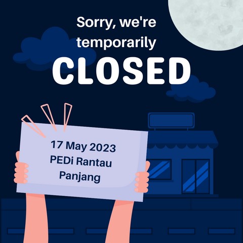 17 Mei 2023 | Aktiviti TerkiniPenutupan Sementara PEDi Rantau Panjang pada 17 May 2023 atas sebab perkara tidak dapat dielakkan, PEDi akan beroperasi pada tarikh yang akan diberitahu pada masa terdeka.