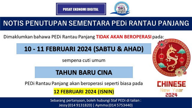 Penutupan PEDi Sempena Sambutan Tahun Baru Cina