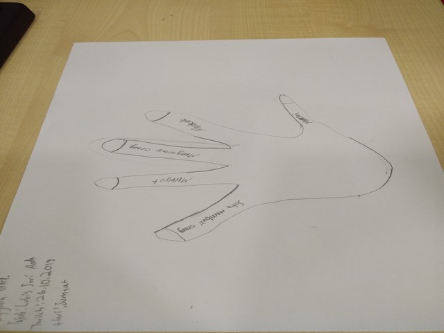 Dalam aktiviti ini, peserta dikehendaki melukis sebelah jari mereka. Kemudiannya, peserta perlu mengisi 5 ciri negatif dalam setiap jari yang mereka lukis. Dalam aktiviti ini, hanya peserta dan instructor sahaja yang tahu ciri negatif mereka. Setelah siap mengisi ciri-ciri negatif, mereka dikehendaki membaca dan mengamati ciri-ciri negatif yang telah mereka tulis. Kemudian peserta dikehendaki memberi ayat berlawanan dari negatif kepada positif. Setelah siap dan apabila disoal apakah mereka ingin berubah kepada seorang yang positif? Rata-rata peserta ini berubah kepada seorang yang positif.