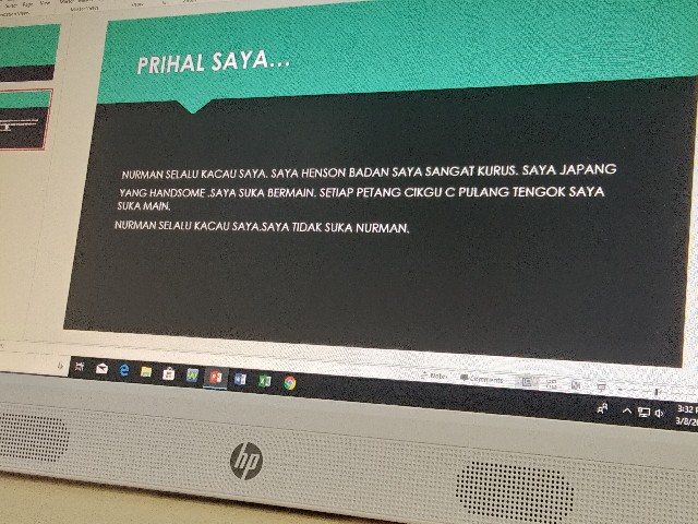 Apa yang menarik dalam kelas ini, 2 peserta merupakan pelajar tahun 2 dan 3 mampu membangunkan slides mereka dengan pemilihan Transitions yang diluar jangkaan kami. Dengan latihan yang diberikan ini, peserta berasa teruja menyiapkan tugasan yang diberikan. Semoga impak pendedahan awal bagi pelajar sekolah rendah dibawah 10 tahun mendapat manfaat dari pendedahan awal ini.