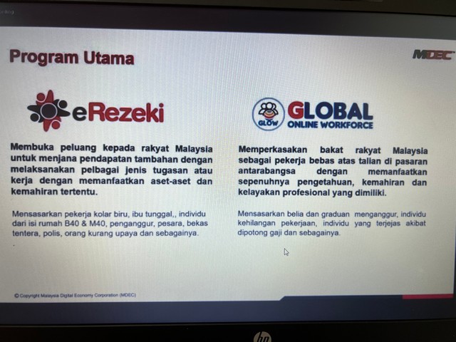 - Penerangan program utama iaitu eRezeki dan Program Global Online Workforce (GLOW).