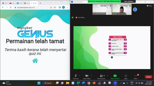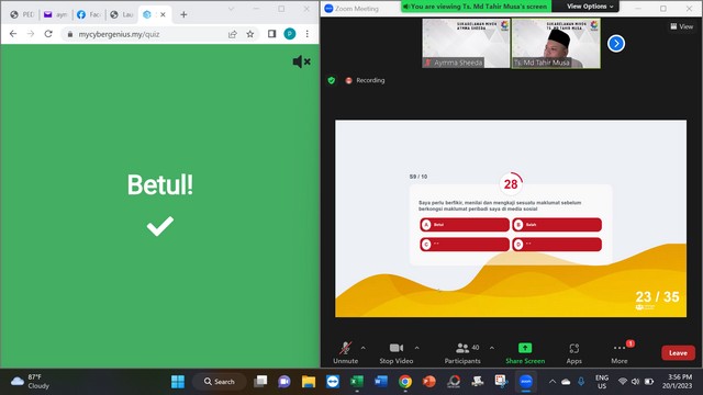 Di akhir sesi perkongsian daripada En. Tahir, beliau mengajak semua sukarelawan yang hadir untuk menyertai kuiz MyCyberGenius (MyCG) bagi mengetahui sejauh mana pemahaman semua sukarelawan tentang topik Klik Dengan Bijak: Terlebih Kongsi.