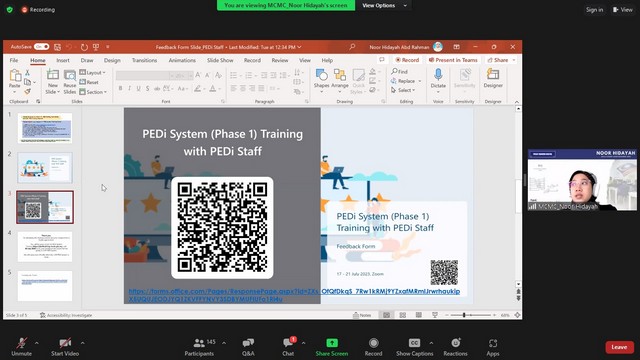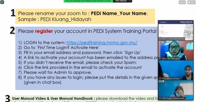 21 Julai 2023 | Aktiviti TerkiniPada 20 Julai 2023, Jumaat, Penolong Pengurus Pusat Ekonomi Digital (PEDi) Rantau Panjang telah menyertai Online Training on PEDi System (Phase 1) yang dianjurkan oleh pihak MCMC. Latihan secara atas talian tersebut telah dijalankan menggunakan platform Zoom Meeting yang bermula daripada jam 9:30 pagi sehingga jam 12:30 tengahari dan telah dihadiri oleh semua staf PEDi daripada zon Sarawak.