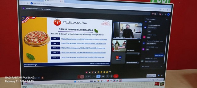 Pada 11 Febuari 2026, Wed, Kelas NADI Mahir Masak Minggu Ke 7 telah diadakan secara atas talian iaitu MTS NADI Mahir dari pukul 9.30 pagi sehingga 11:00 pagi. Program tersebut telah dihadiri oleh dua orang peserta dan dijalankan oleh pihak NADI Mahir sendiri.